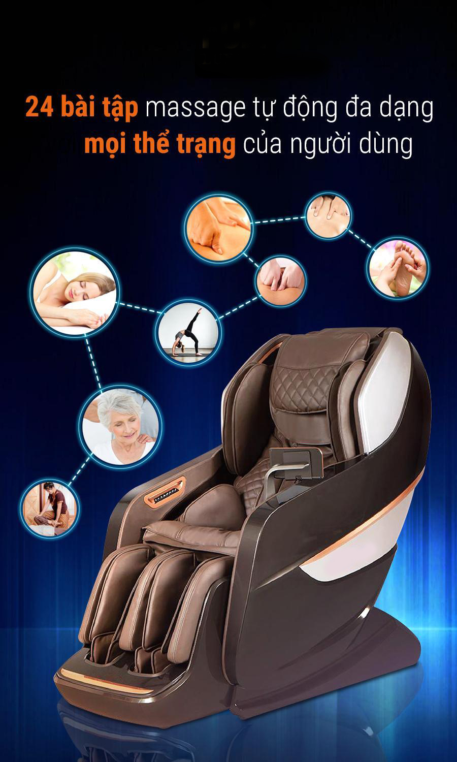 Được trang bị 24 bài tập từ cơ bản đến nâng cao, OKAZAKI JS 3000 đáp ứng được hầu hết các nhu cầu sử dụng của đa dạng đối tượng từ thư giãn, giảm đau đến trị liệu. Đây là một trong những đặc điểm giúp JS 3000 trở thành chiếc ghế “quốc dân” mà mọi thành viên trong gia đình đều mong muốn và có thể sử dụng.