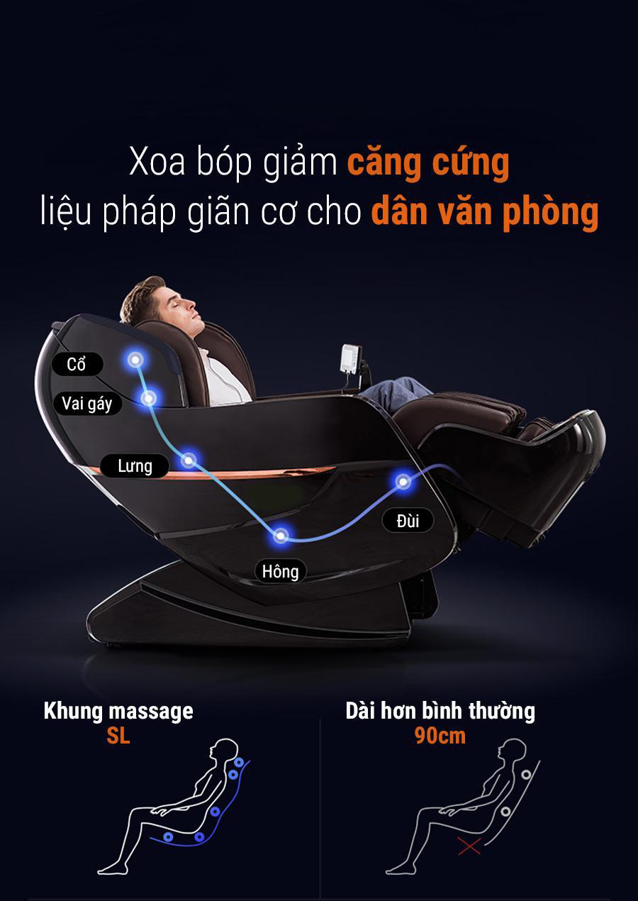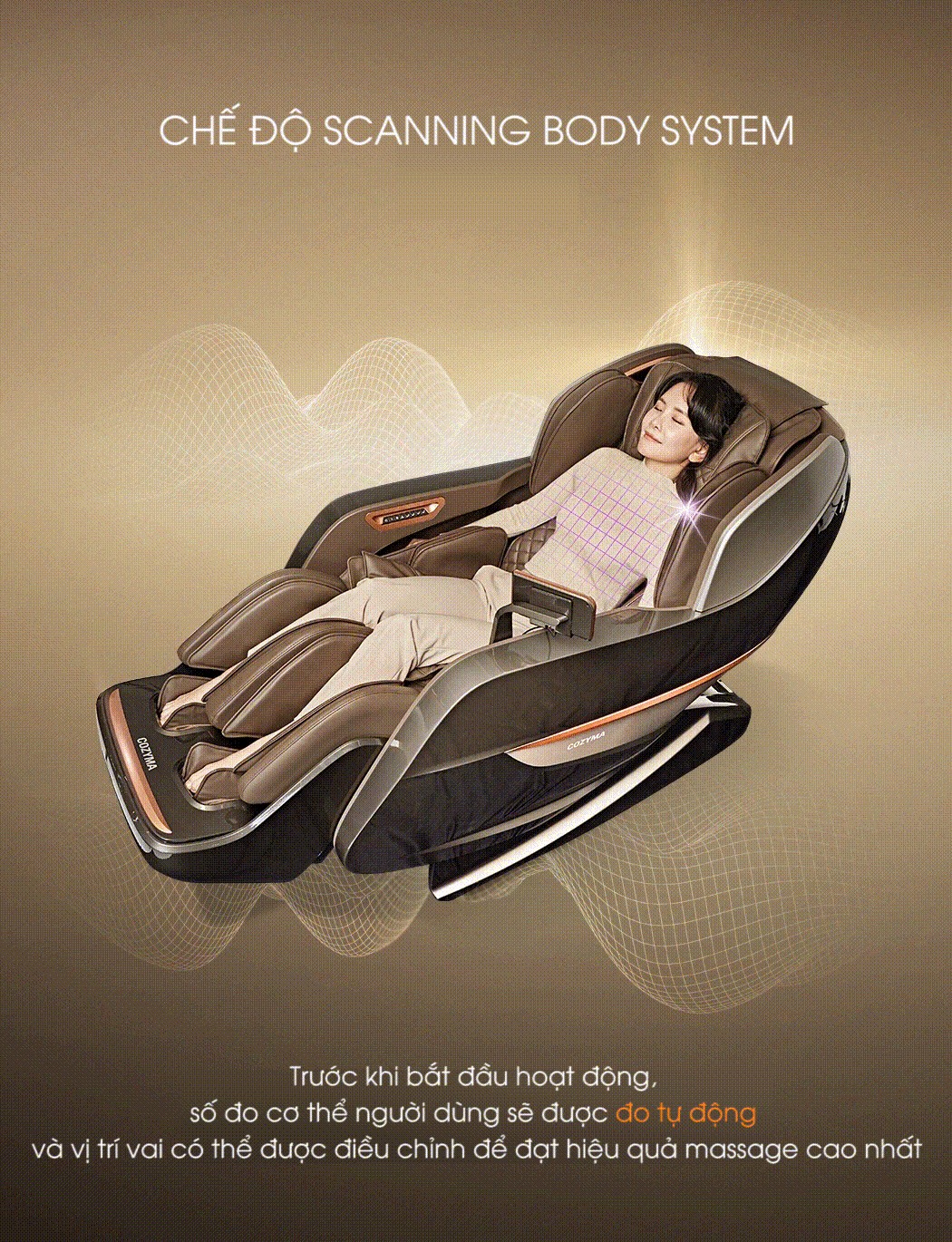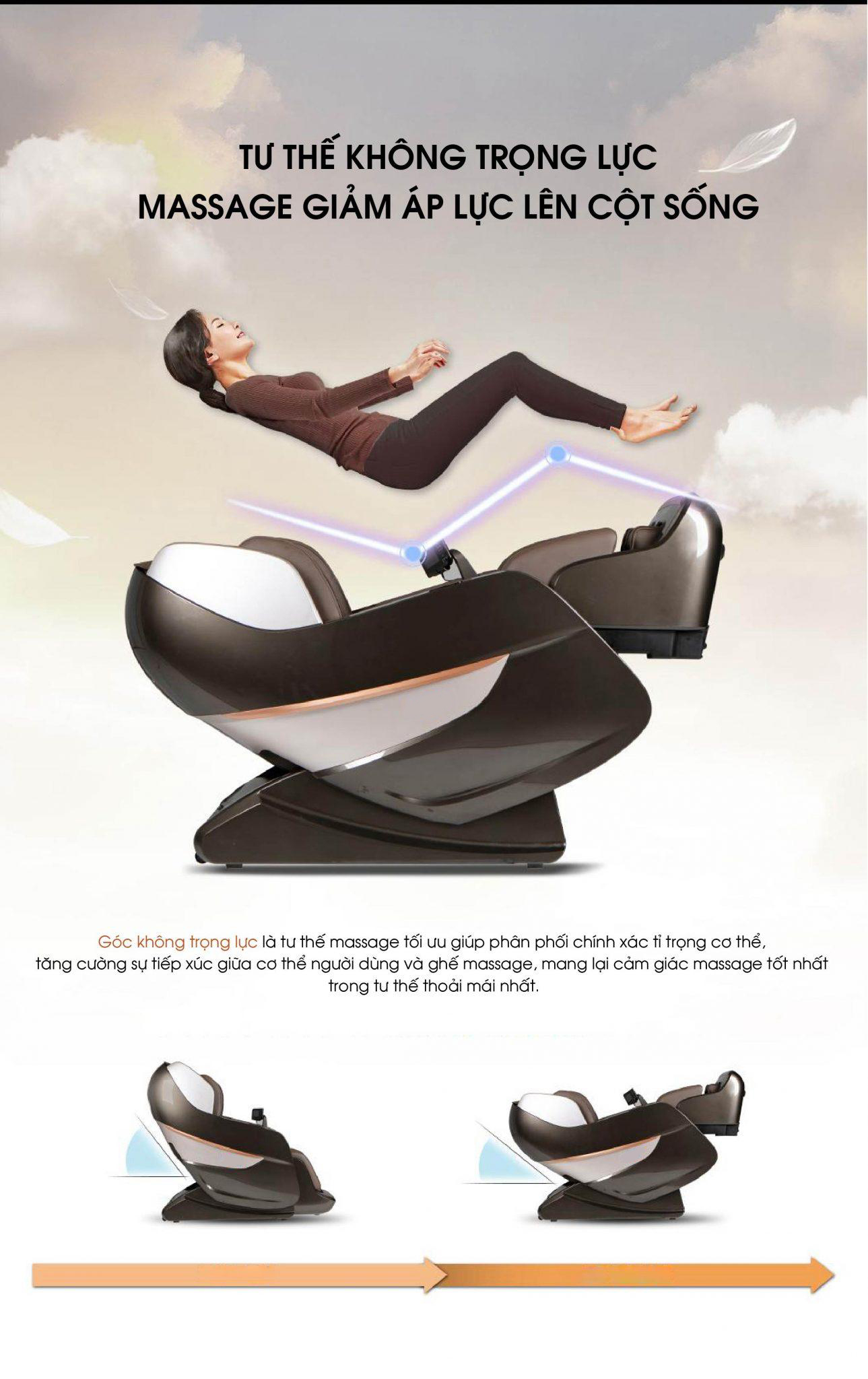 Khi ghế được trả về tư thế không trọng lượng bình thường, bi sẽ chuyển sang các bài đấm bóp. Cứ như vậy luôn phiên liên tục sẽ giải phóng hết các áp lực tích tụ ở cổ vai gáy cũng như tái tạo năng lượng toàn bộ cơ thể suốt 1 ngày dài làm việc.