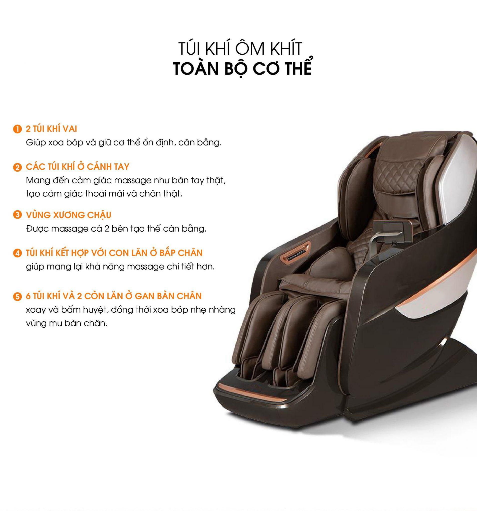 Bên cạnh đó, chế độ rung ở vùng hông và mông rung lắc liên tục, động tác nhanh nhẹn dứt khoát, hệ thống túi khí bóp mạnh, chặt, hệ thống viên bi sau bắp chân hoạt động với cường độ mạnh. Điều này sẽ giúp người lái xe được thư giãn, ngủ sâu giấc và tái tạo năng lượng cho những lần lái xe đường dài tiếp theo.