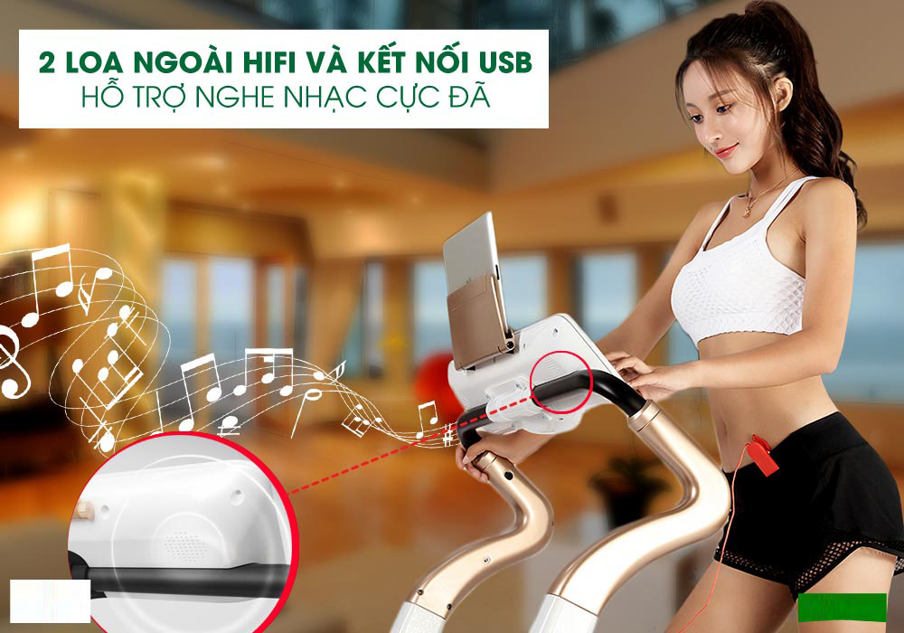 Máy chạy bộ điện Flora dòng sản phẩm máy chạy bộ điện dành cho gia đình theo xu hướng mới nhất, hiện đại nhất hiện nay. Được tích hợp JACK cấm hỗ trợ nghe nhạc với 2 loa hifi cực xịn, nghe nhạc cực đã.