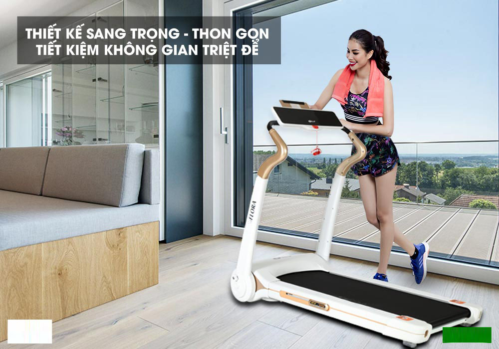 Máy chạy bộ điện Flora thiết kế mới gấp gọn tiện lợi, dễ dàng di chuyển mọi nơi vô cùng tiết kiệm không gian cho ngôi nhà bạn.