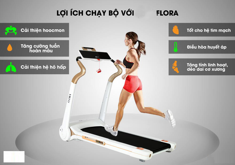 - Chạy bộ với Flora giúp toàn thân vận động giảm đau nhức cơ thể, đốt cháy calo