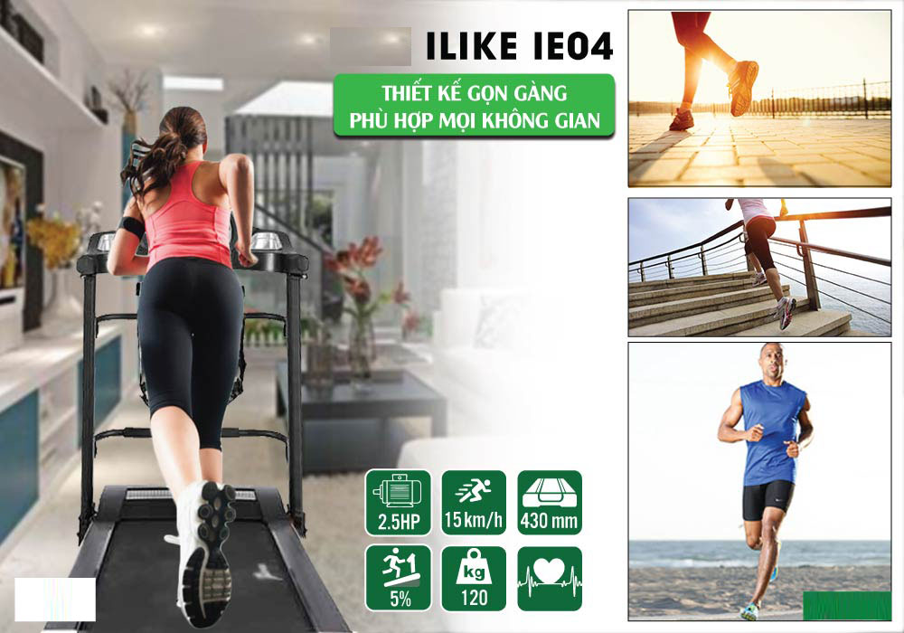 Máy chạy bộ tại nhà ILIKE iE04 với mức giá cực rẻ giúp bạn có ngay thân hình thon gọn bởi tính đa năng luyện tập body, tim mạch, duy trì vóc dáng thon gọn, kéo dài tuổi thọ tại nhà mỗi ngày thật đơn giản.