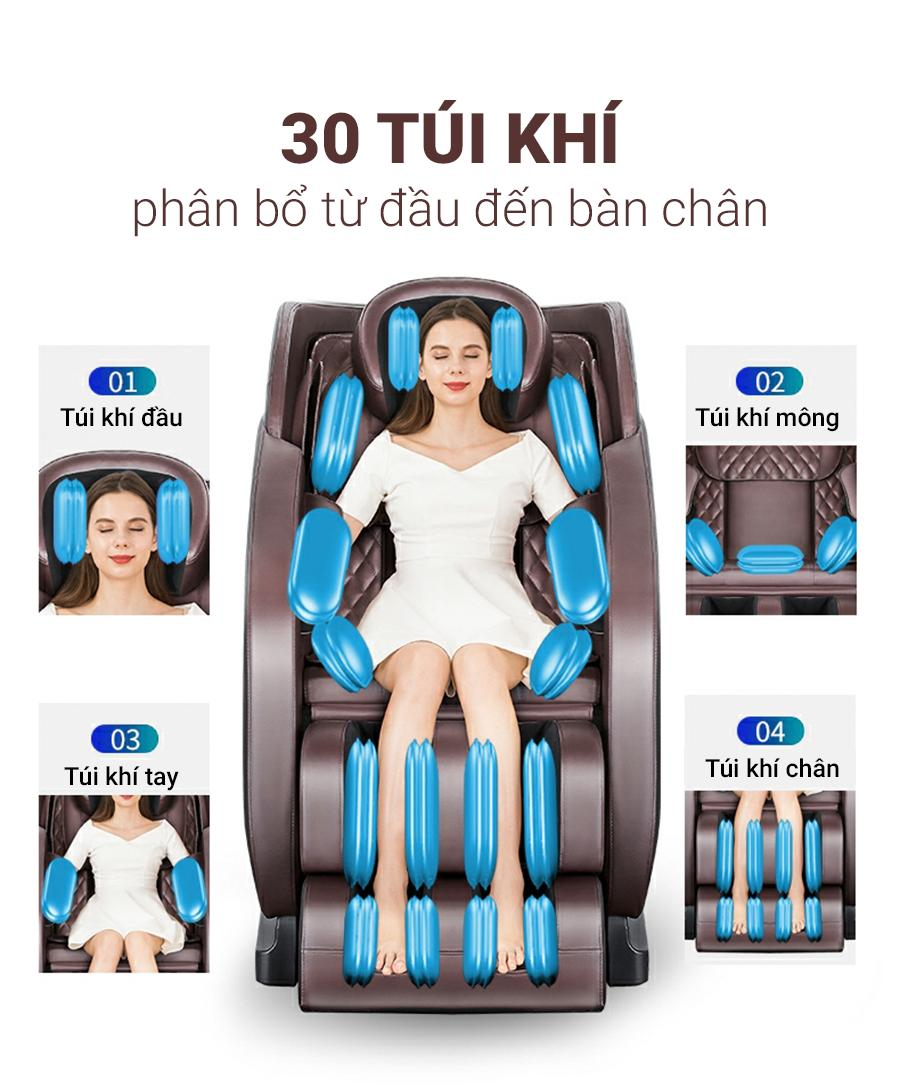 Hệ thống túi khí trải dọc vai, hông, đùi giúp massage giảm đau, thư giãn nhanh