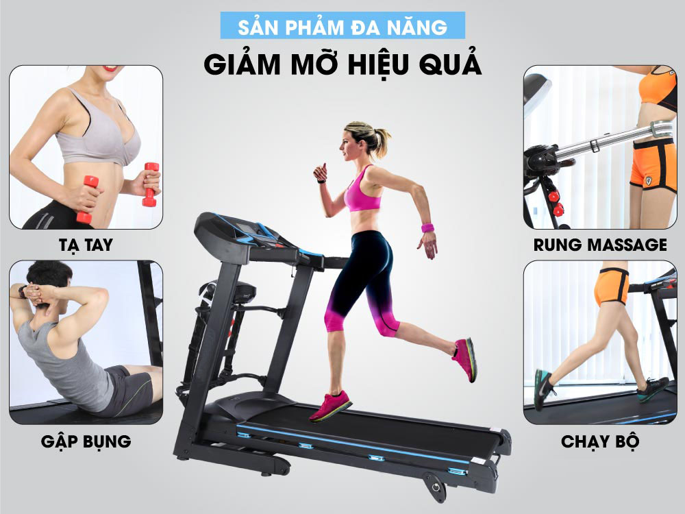 Máy chạy bộ điện đa năng Maximus là dòng máy đa năng có thể luyện tập cùng lúc nhiều bài tập và nhiều động tác massage, gập bụng loại bỏ mỡ vùng bụng, tập tạ tay. Tất cả đều giúp giảm cân, đốt cháy calo, duy trì vóc dáng thon gọn vô cùng hoàn hảo.