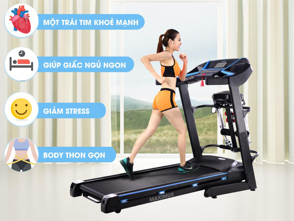 Chạy bộ mỗi ngày với máy chạy bộ điện Maximus là bí quyết có thân hình hoàn hảo, săn chắc, mà không cần phải tốn quá nhiều tiền và thời gian đến phòng tập.
